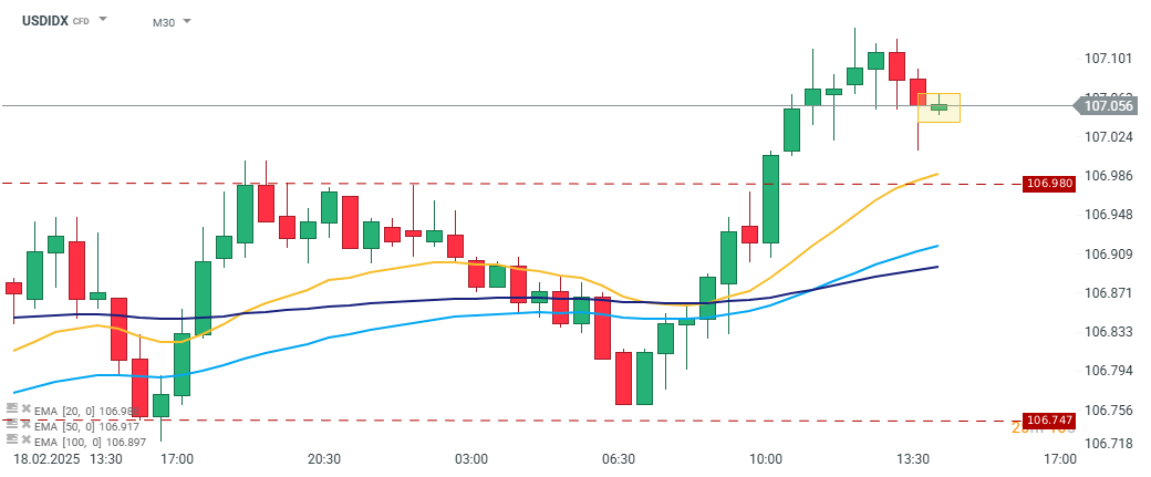 Rynek przyjmuje dane spokojnie, a indeks dolara pozostaje praktycznie bez zmian.