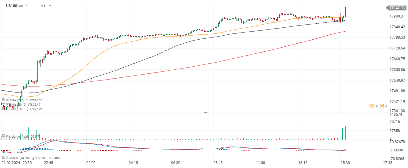 Przede wszystkim słabsze dane usługowe zadowoliły byki, osłabiając dolara i wspierając sentyment na Nasdaq (US100). Wcześniej analitycy S&P Global Research podnieśli prognozy realnego wzrostu PKB USA dla 2024 roku.