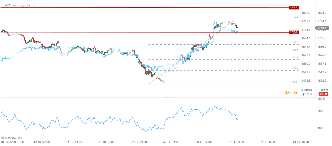 WIG20 próbuje odrabiać straty po pierwszej godzinie handlu. Kluczowe wsaprcie to okolice poziomu 1735 punktów. Źródło: xStation5