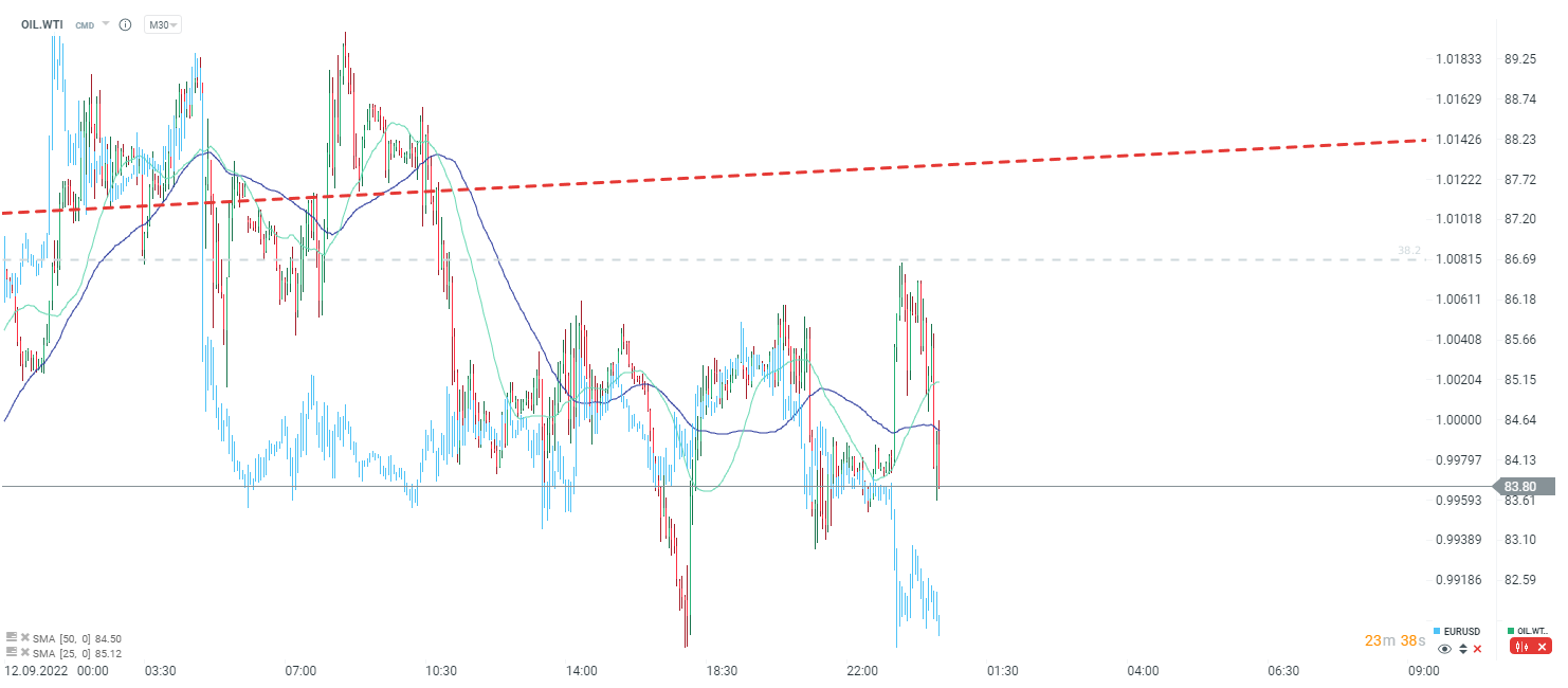 Ropa kontynuuje spadki, niwelując cały poranny wzrost w odpowiedzi na mocnego dolara. Źródło: xStation5