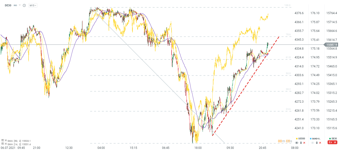 DAX odrobił już ponad 2/3 strat z ostatniej wyprzedaży. Źródło: xStation5