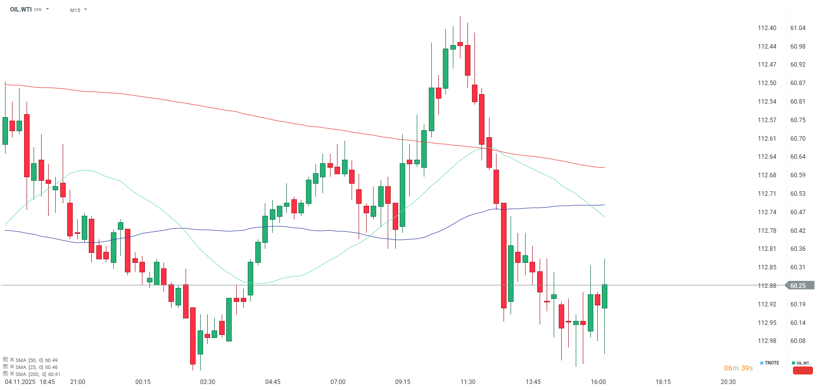 Znaczący wzrost zapasów ropy w magazynach był skorelowany z ostrym spadkiem zapasów paliw (benzyny i destylatów). Taka dywergencja jest zwykle tłumaczona spadkiem wykorzystania mocy przerobowych rafinerii, ale w tym przypadku wskazuje również na ożywienie popytu na paliwa w USA.Ropa naftowa obecnie próbuje odrabiać straty po popołudniowych spadkach, reagując pozytywnie na poziom wsparcia w okolicach 60 USD za baryłkę.