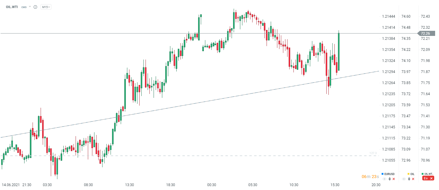 Co na to ropa? Wyraźnie odbija. Potencjalnie możemy obserwować formację oRGR z celem powyżej ostatnich lokalnych szczytów. Źródło: xStation5