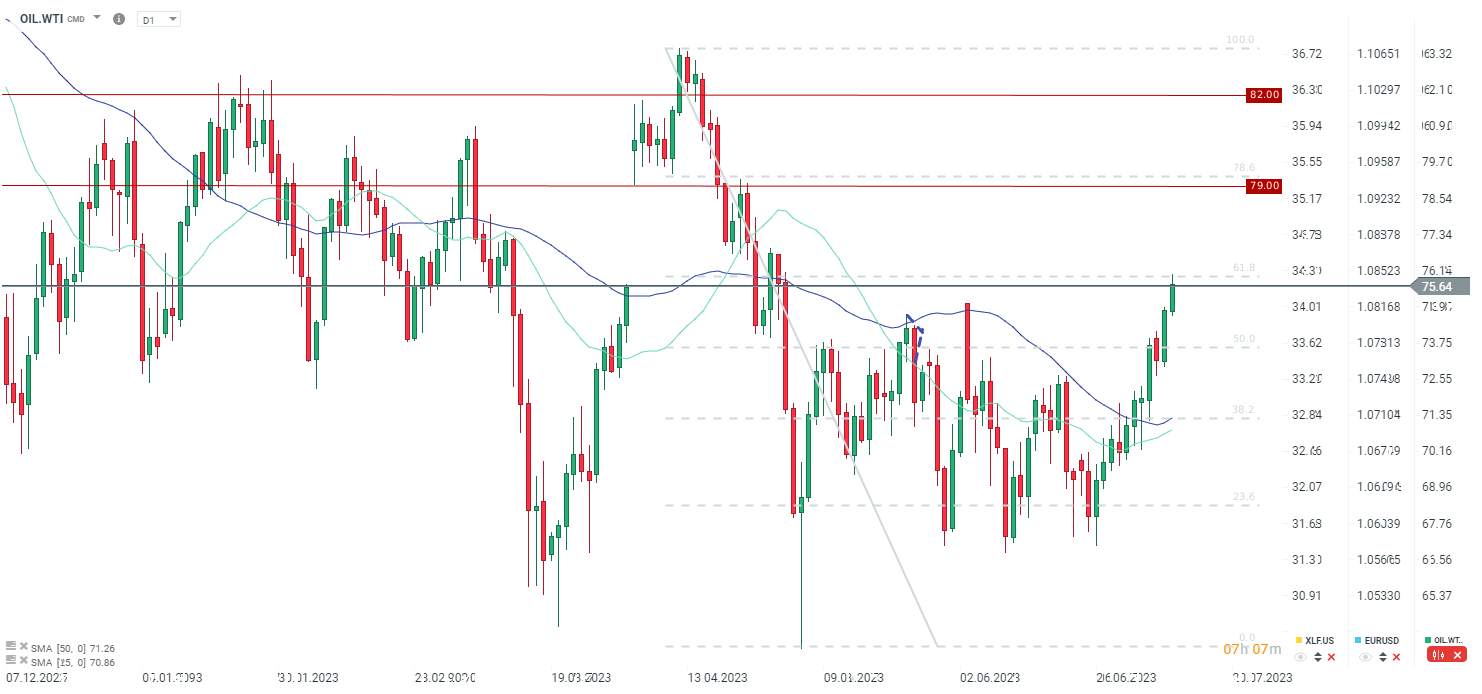 Ropa WTI testuje najwyższe poziomy od początku maja. Źródło: xStation5