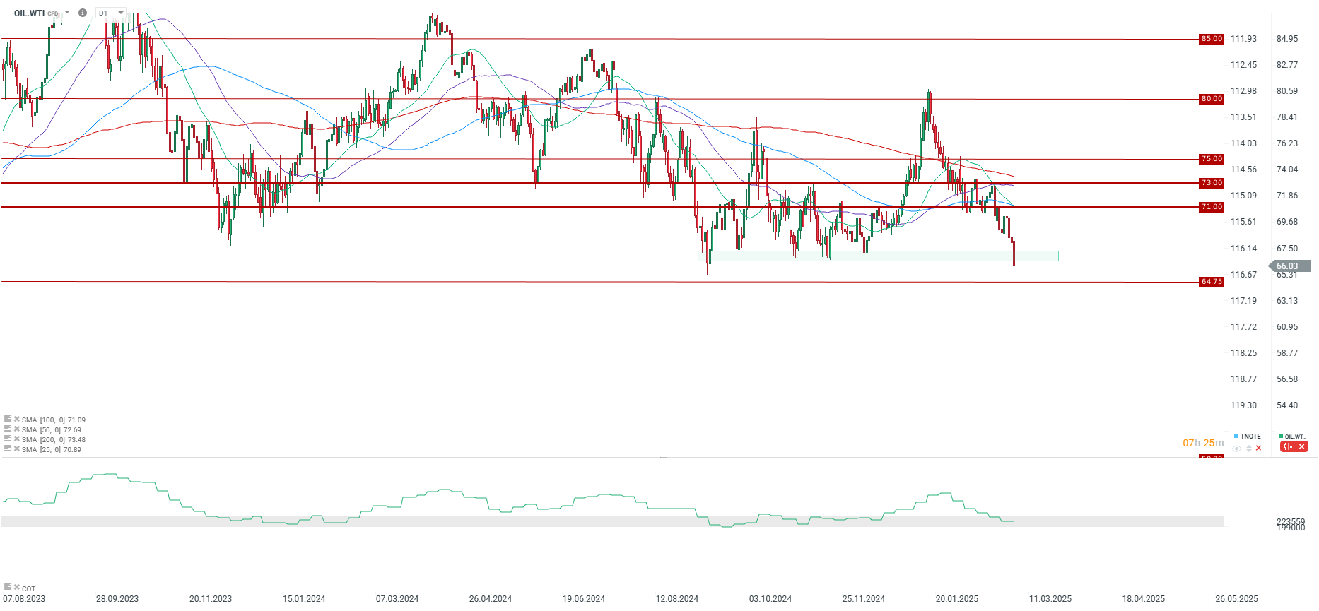 Mieszany raport. Z jednej strony mocny przyrost zapasów ropy, który jest negatywny ogólnie dla rynku, ale z drugiej strony spadek zapasów produktów ropopochodnych, który jest jednak związany ze spadkiem użycia mocy rafineryjnej. Ropa WTI testuje 66 USD za baryłkę i potencjalnie może dzisiaj dojść do najniższego zamknięcia od 2021 roku.