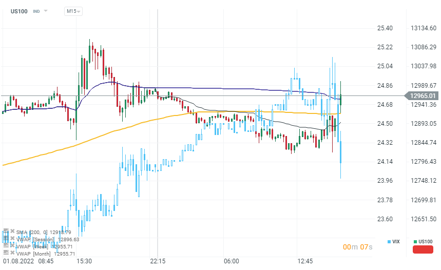 Indeks US100 oraz Indeks Strachu VIX. Źródło: xStation 5