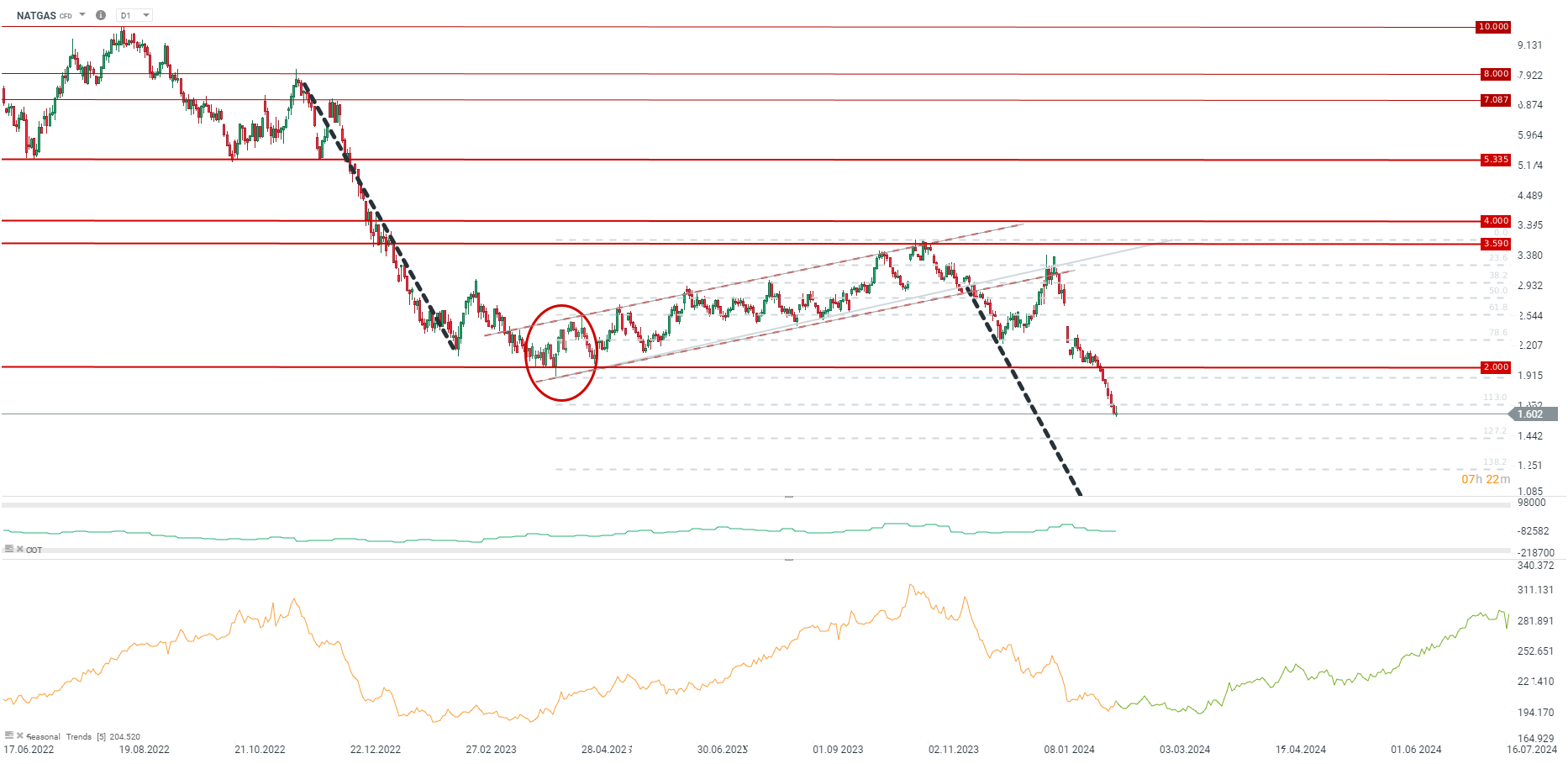 Gaz zredukował poranne wzrosty i zaliczył nawet spadek poniżej 1,6 USD/MMBTU. Źródło: xStation5