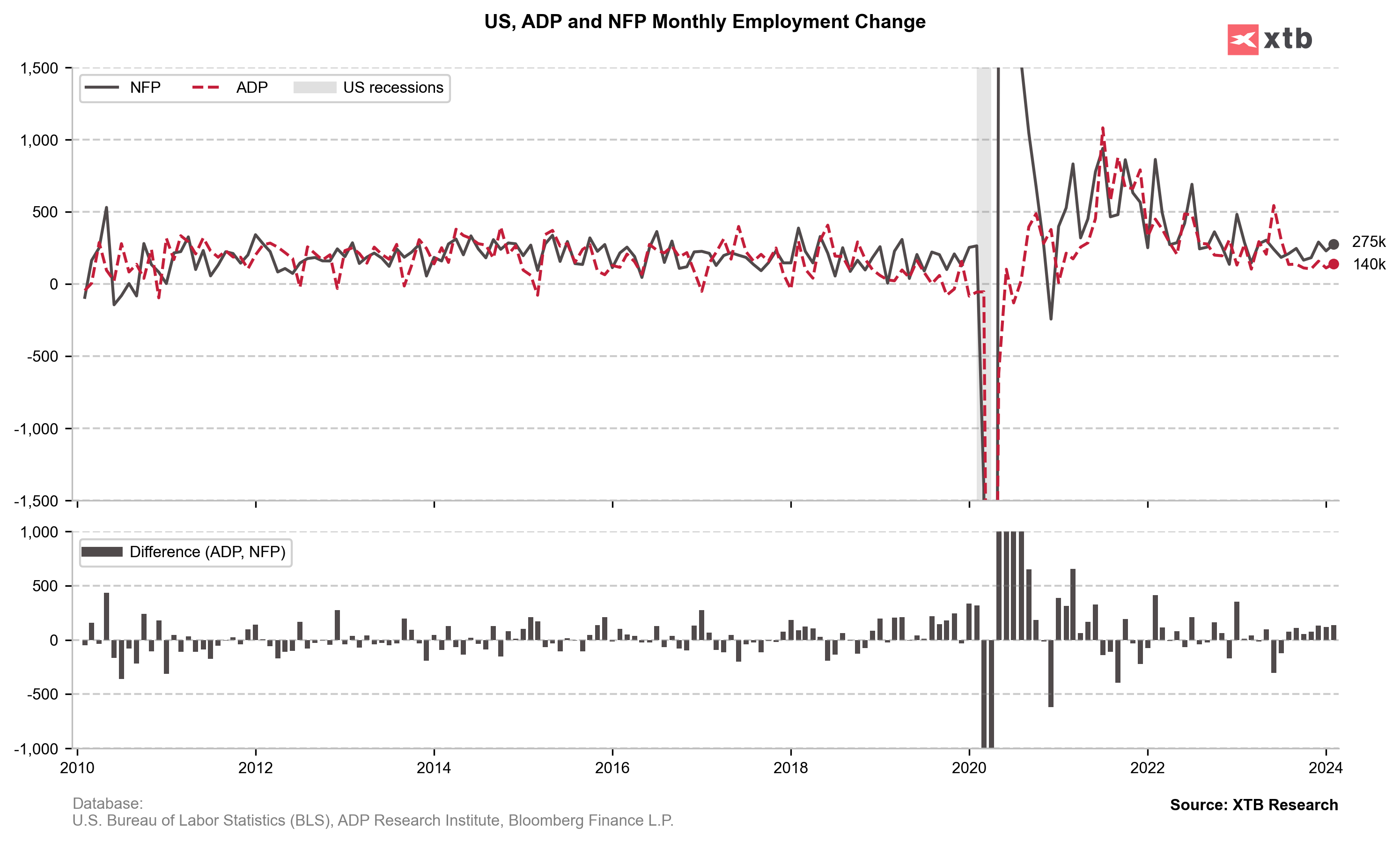 - NFP: 275 tys. (oczekiwano: 200 tys.; poprzednio: 229 tys., rewizja z 353 tys.)