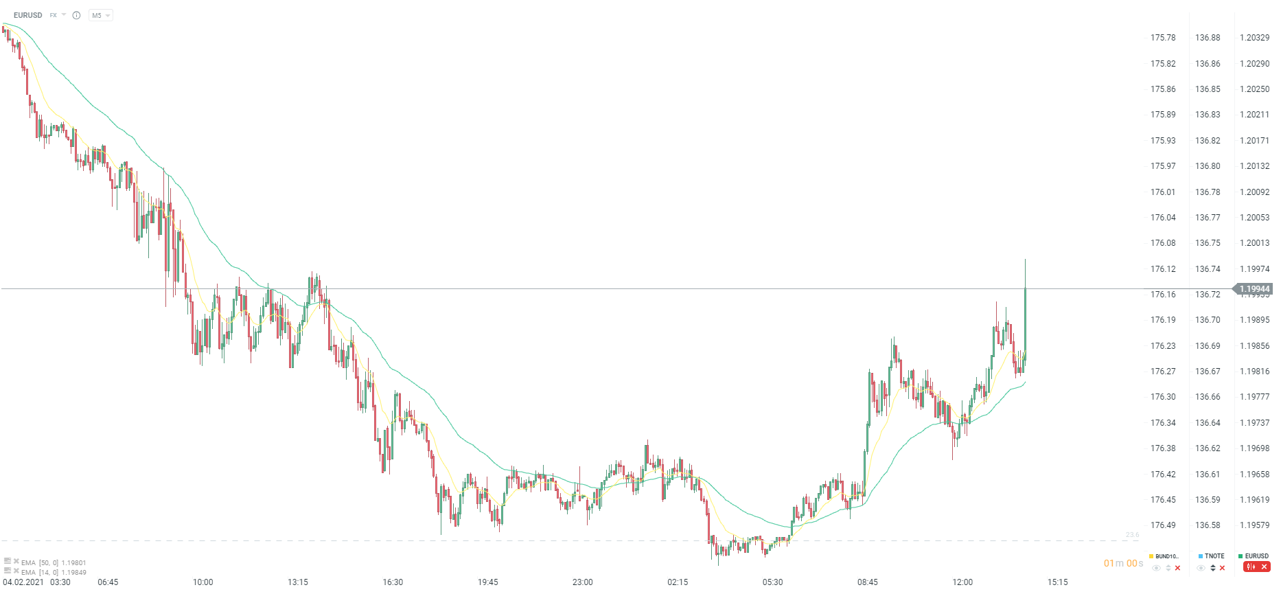 EURUSD wyraźnie w górę po odczycie. Źródło: xStation5
