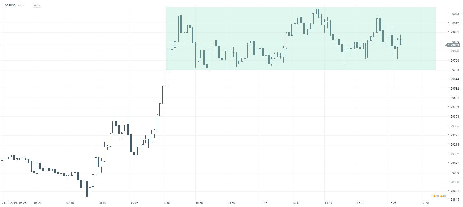 Funt brytyjski zareagował ruchem na blisko 30 pipsów w dół, po czym dynamicznie odbił. Cena wraca więc do lokalnej konsolidacji.