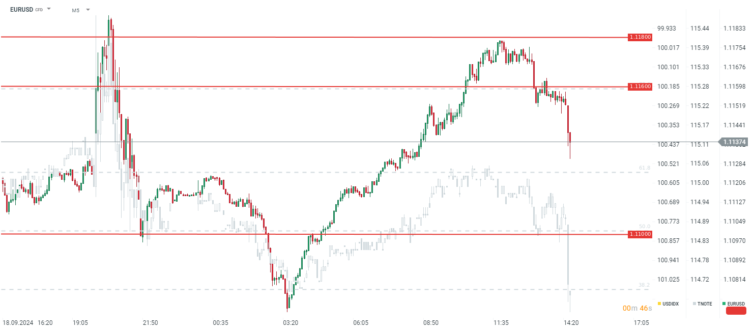 Dane wywołują umocnienie dolara, który znalazł się pod presją po wczorajszej decyzji Fed o mocnym cięciu stóp procentowych. Widzimy również wyraźne spadki cen obligacji, co oznacza wzrost rentowności.