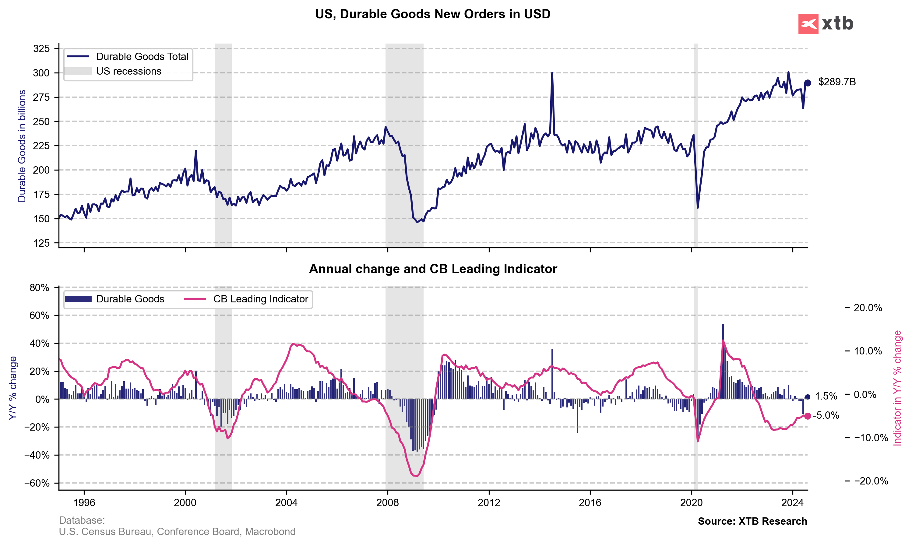 Zamówienia w ujęciu rocznym zaliczają wzrost (odsezonowane dane), co następuje drugi miesiąc z rzędu po serii sporych spadków z II kwartału tego roku. Źródło: Macrobond, XTB