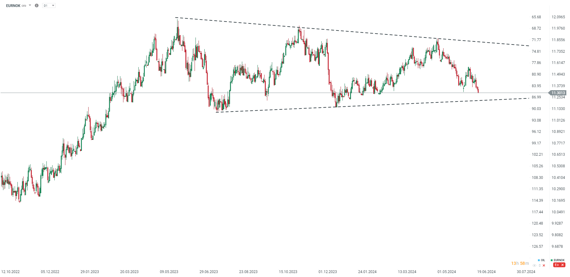 Stopa bez zmian na poziomie 4,5%. NOK umacnia się minimalnie po decyzji. Więcej na ten temat w wykresie dnia.