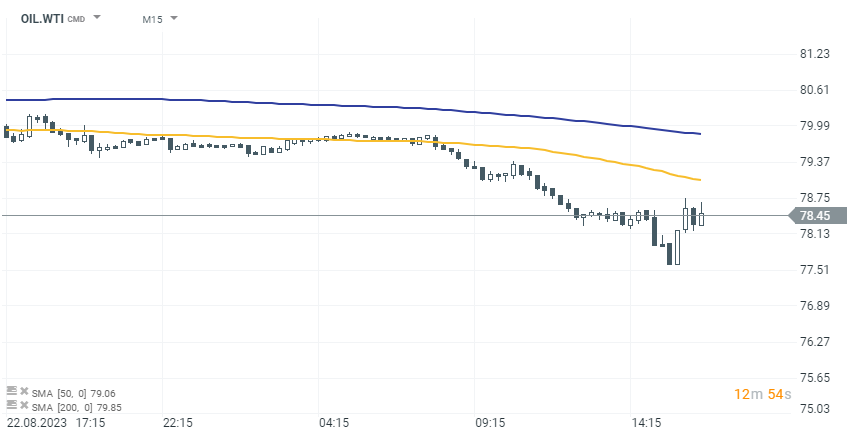Spadek zapasów ropy naftowej jest największy od października 2021 roku, po tych danych OIL.WTI wyraźnie zareagował wzrostem kursu, jednak po chwili powrócił do bazy przed raportem.