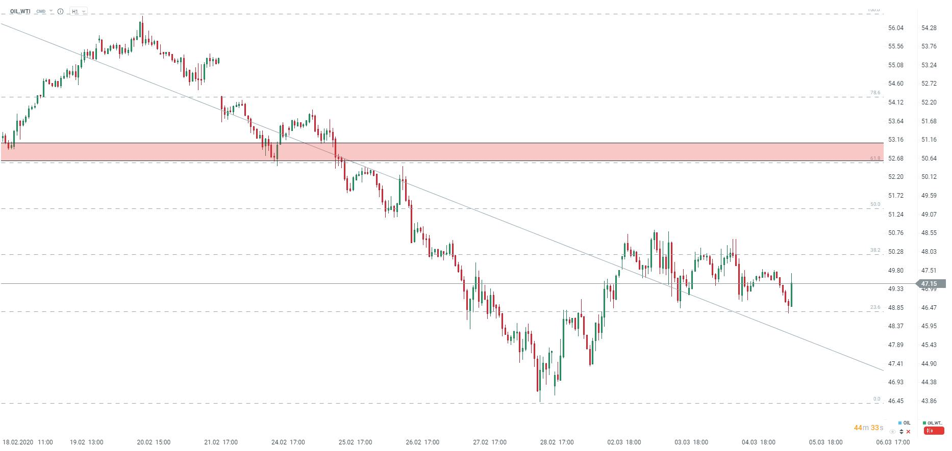 Ropa reaguje pozytywnie na doniesienia dotyczące sporego cięcia produkcji ropy przez OPEC. Źródło: xStation5