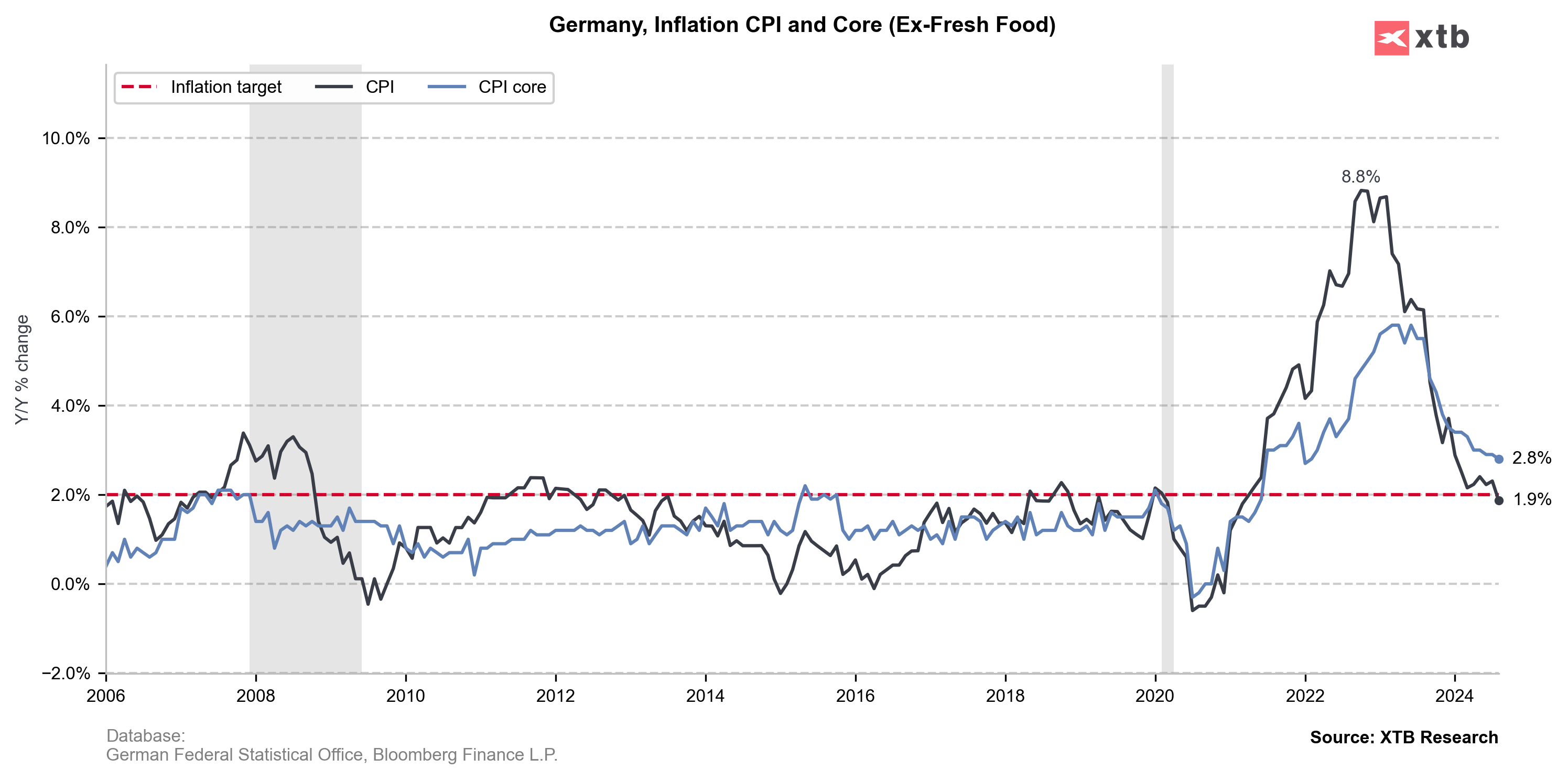 Niemiecki CPI pozostał zgodny z oczekiwaniami, co miało umiarkowany wpływ na parę walutową EURUSD.