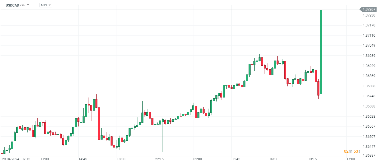 Po danych z Kanady kanadyjski dolar osłabił się w relacji do 'greenbacka' a USDCAD zyskuje niemal 0,5%.