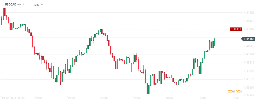 Po publikacji danych z Kanady dolar kanadyjski kontynuuje spadki w porównaniu do USD. Para USDCAD zbliża się do lokalnego szczytu na poziomie 1,443.