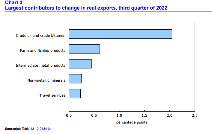 Ważną składową był eksport ropy oraz produktów ropopochodnych. Źródło: Statistics Canada