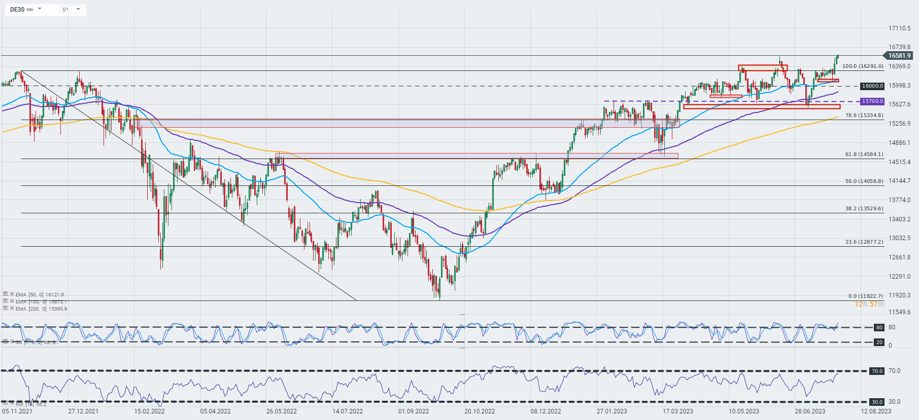 DE30 wzniósł się na nowe, historyczne szczyty na krótko po odczycie danych ze strefy euro.