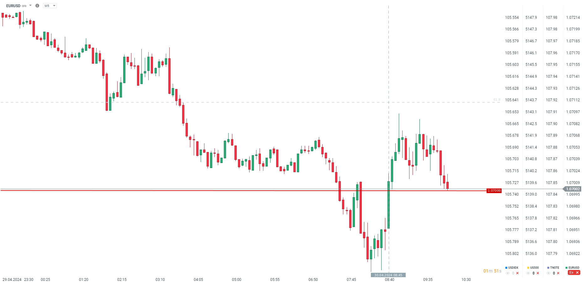 Dane dosyć mieszane, w szczególności na tle bardzo dobrych danych z Francji, Hiszpanii oraz Włoch. Oczywiście odbicie kwartalne może być odbierane pozytywnie, ale EURUSD utrzymuje spadki po danych, choć po publikacji danych z Francji obserwowaliśmy v-kształtne odbicie na M5.