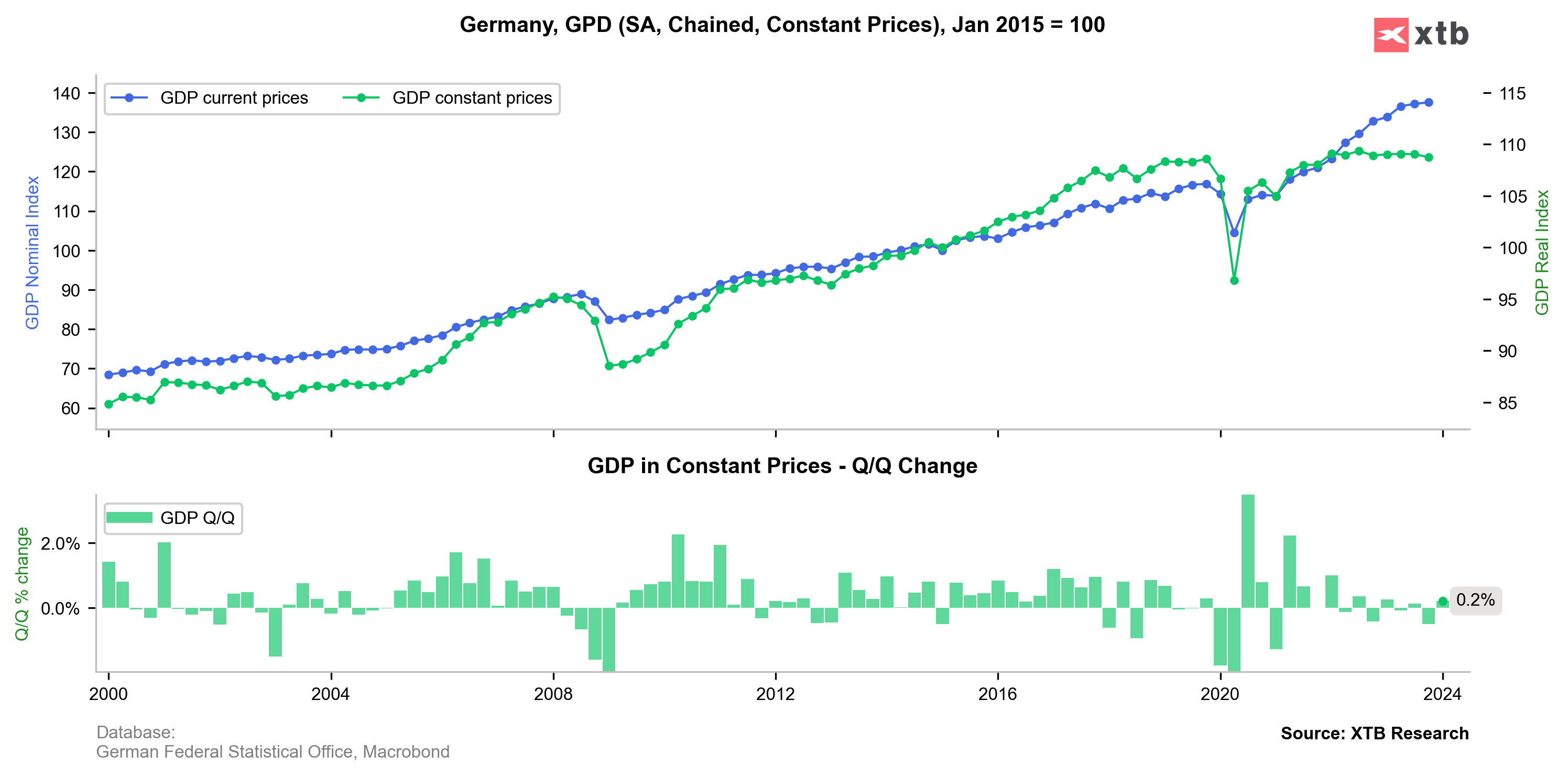 PKB z Niemiec: -0,9% r/r (oczekiwano: -0,8% r/r; poprzednio: -0,4% r/r)