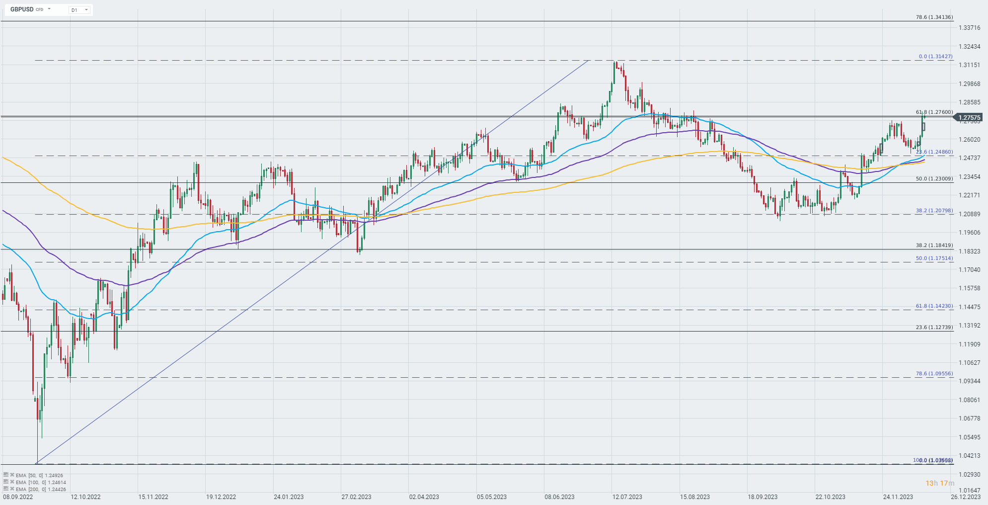 Para GBPUSD cały czas utrzymuje się w strefie oporu wyznaczonego przez zniesienie 61,8% Fibo fali wzrostowej zapoczątkowanej we wrześniu 2022 roku. Źródło: xStation