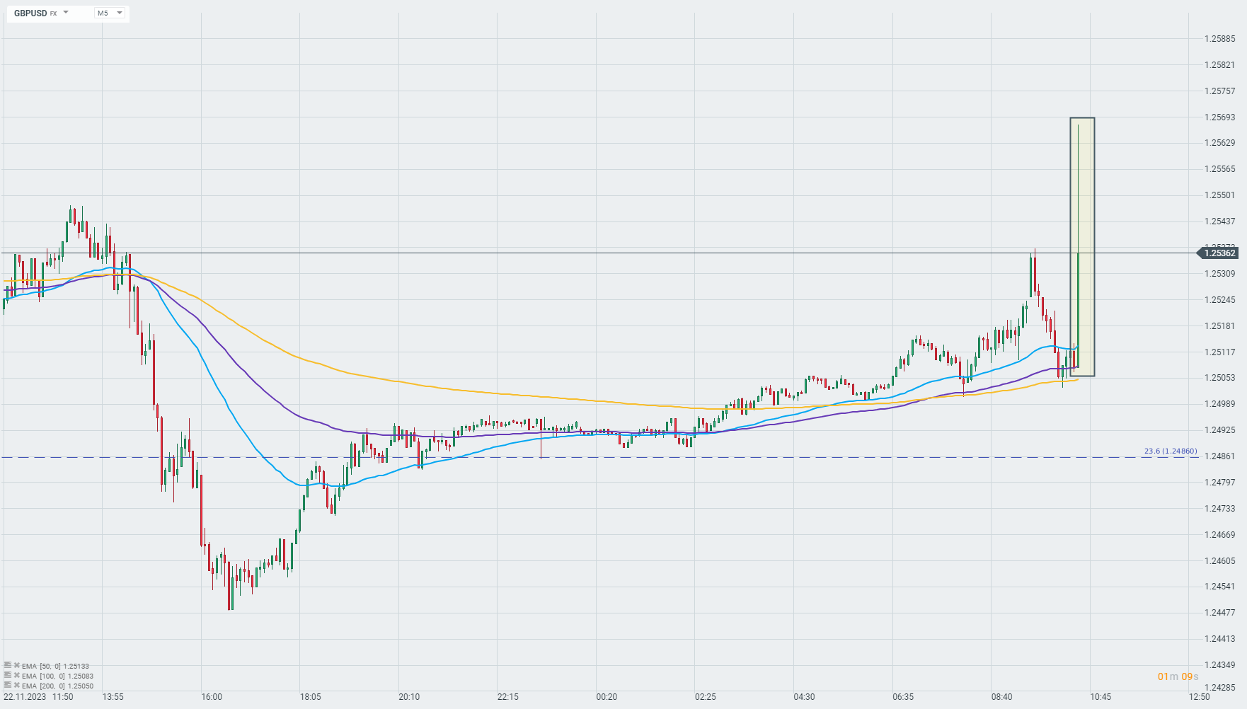 Funt brytyjski umocnił się względem USD na krótko po odczycie danych.