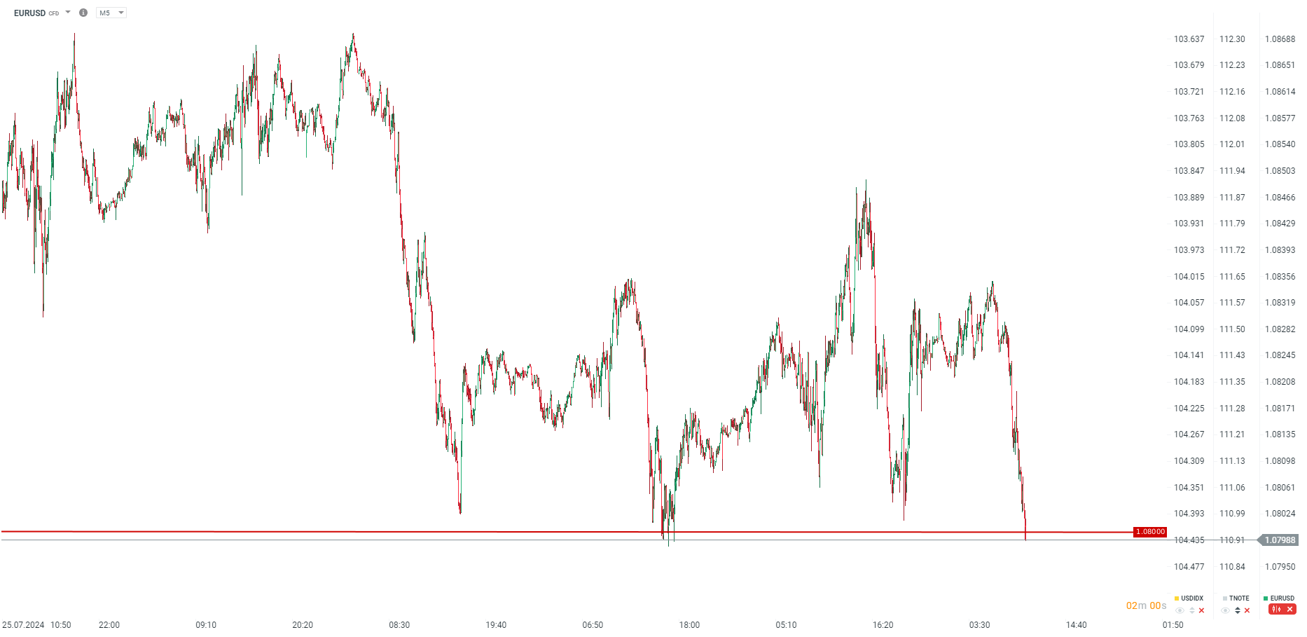 Podsumowując: mamy lepszy odczyt w całej strefie euro niż wstępny, zgodny z odczytem w czerwcu. Lepiej wypadają odczyty w Niemczech (wciąż spadek), wyraźna poprawa we Włoszech i zdecydowane pogorszenie w Hiszpanii. Z drugiej strony jedynie Hiszpania prezentuje cały czas odczyty powyżej 50 punktów. Rynek nie jest jednak zachwycony i obserwujemy spadek EURUSD poniżej poziomu 1,0800: