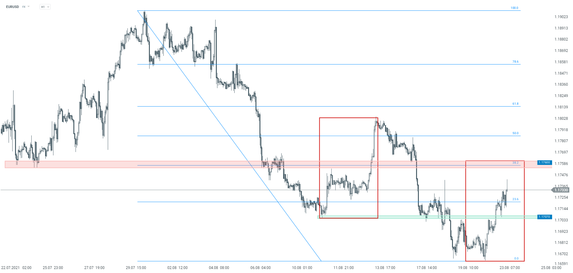Przed chwilą poznaliśmy dane z USA. Po mieszanych danych PMI z Niemiec i Francji, przyszedł czas na publikację danych ze Stanów Zjednoczonych. Zarówno w przypadku sektora przemysłowego, jak i usługowego możemy obserwować rozczarowanie. Wskaźnik PMI dla przemysłu wypadł na poziomie 61,2 pkt, przy oczekiwanych 62,5 pkt (poprzednio (63,4 pkt). Z kolei wskaźnik PMI dla usług wyniósł 55,2 pkt, przy prognozie zakładającej 59,5 pkt (poprzednio 59,9 pkt). Rozczarowanie danymi nie przekłada się jednak na cofnięcie na rynku akcji. Główne indeksy giełdowe w USA kontynuują ruch w górę po rozpoczęciu sesji za oceanem. Jeśli chodzi natomiast o EURUSD, także nie widać większej reakcji. Główna para walutowa znajduje się w korekcie wzrostowej. Jeżeli kierunek zostanie utrzymany, kluczowym oporem, na który warto zwrócić uwagę jest strefa przy 1,1760.