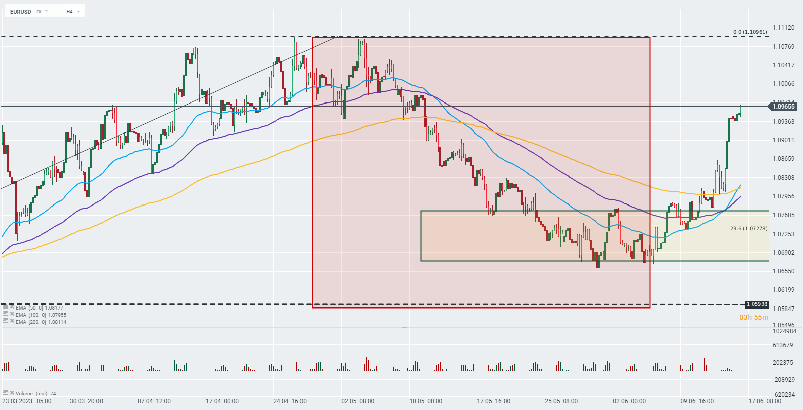 Para EURUSD przedłuża falę wzrostów po odczycie danych UoM. Źródło: xStation5