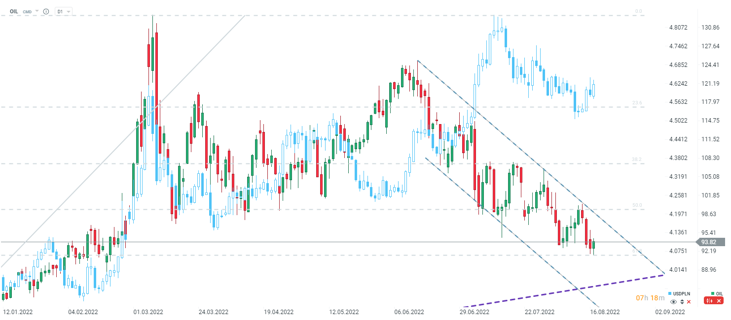 Ropa reaguje pozytywnie i zyskuje z perspektywy dnia, choć wcześniej zaliczono najniżze poziomy od początku stycznia. Źródło: xStation5