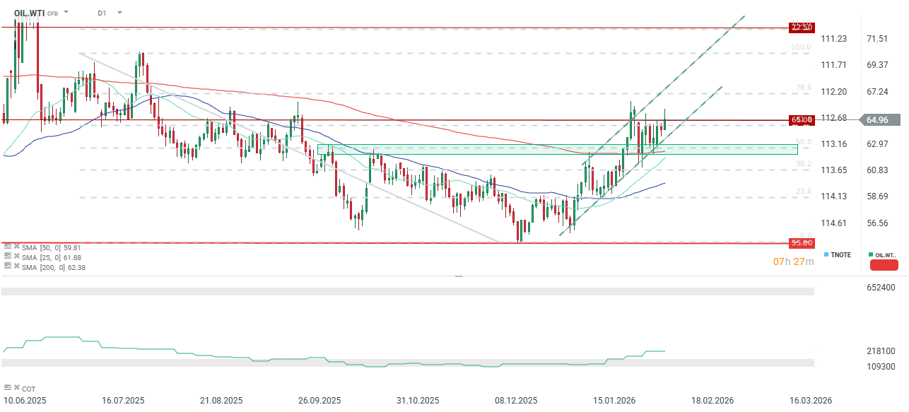 Warto zauważyć, że raport API wskazywał na gigantyczny wzrost na poziomie 13,4 mln brk na dzień. EIA opublikowała dzisiaj raport w którym wskazuje na mocny przyrost zapasów ropy w najbliższych dwóch latach, co może przyczynić się do obniżcenia cen ropy z obecnych poziomów. EIA wskazuje, że ropa Brent uśredni się w tym roku poniżęj 60 USD za baryłkę. Wobec tego warto zauważyć, że premia geopolityczna na rynku ropy związana z Iranem, Rosją czy również Wenezuelą może wynosić nawet 10 dolarów na baryłce.
