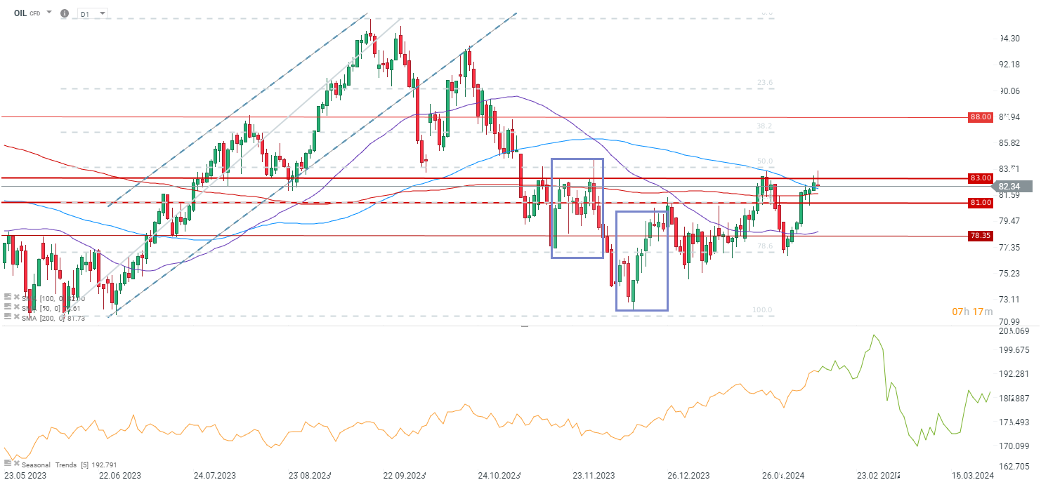 Zapasy ropy mocno rosną, ale spadek zapasów benzyny wskazuje na niski przerób ropy przez rafinerie. Ropa silnie cofa się po tych danych i być może wyznacza formację podwójnego szczytu.