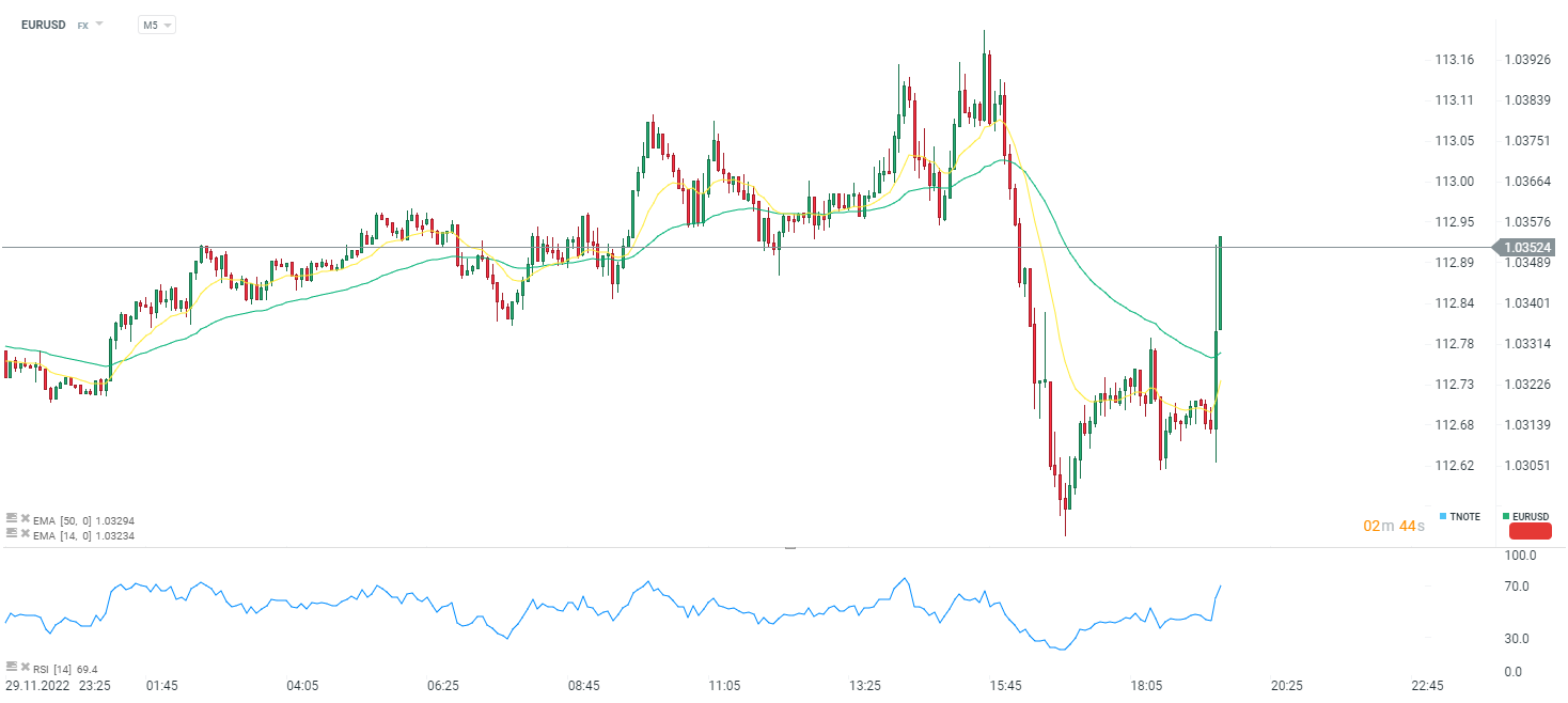 - Powell w swoim dzisiejszym przemówieniu zaraz na początku wskazuje, że ostatnie dane są zachęcające i może być zasadne, aby zmniejszyć tempo podwyżek już od grudnia.