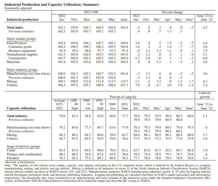 Raport o produkcji przemysłowej i wykorzystaniu mocy produkcyjnych. Źródło: FED