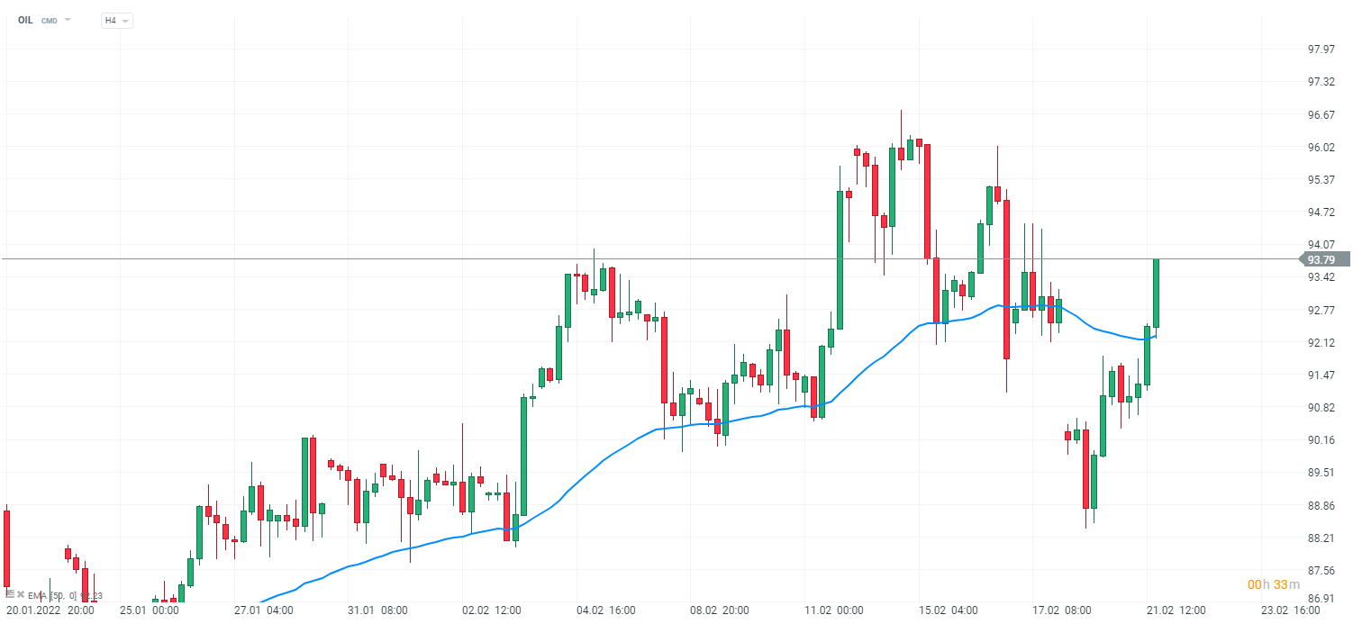 Silna aprecjacja ropy naftowej (OIL) po słowach Władimira Putina o uznaniu separatystycznego Donbasu. Źródło: xStation 5