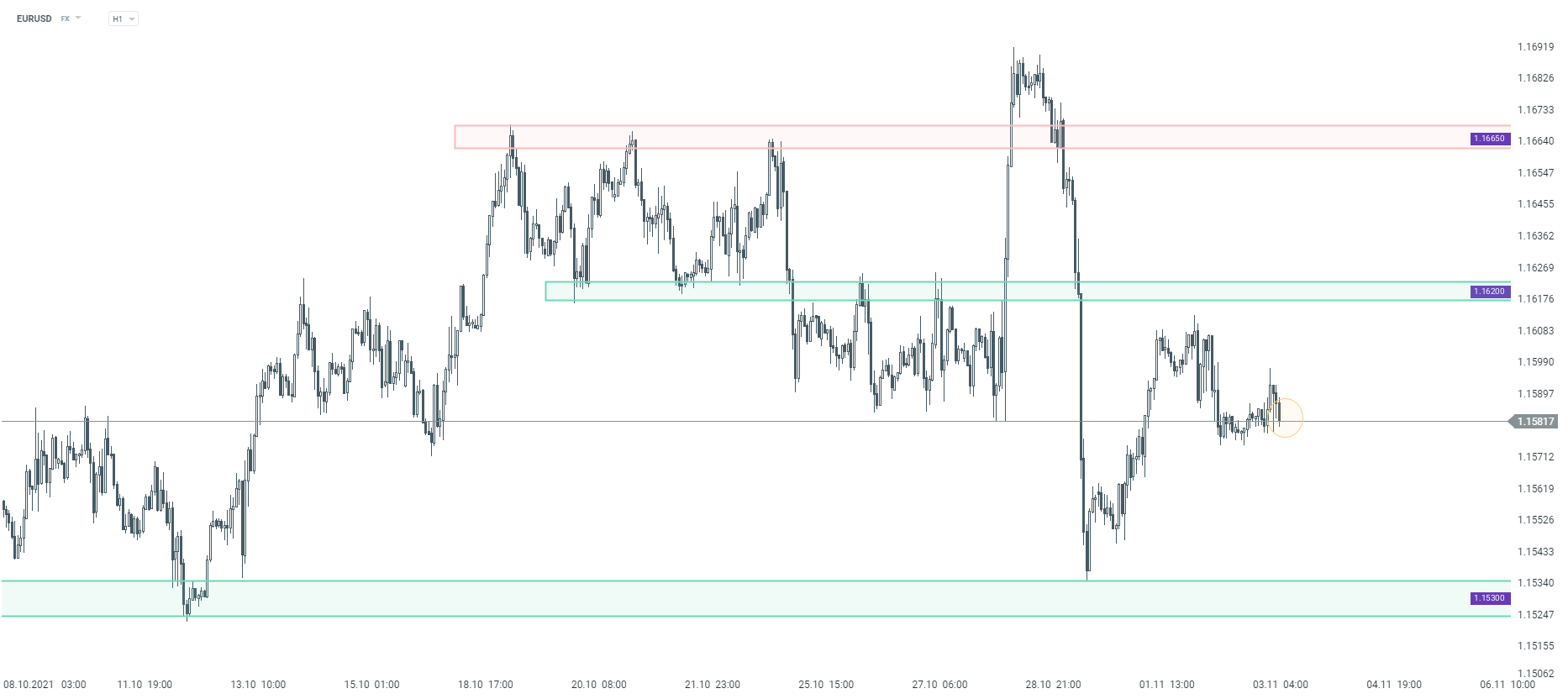 Patrząc technicznie na wykres EURUSD, notowania utrzymują się "w powietrzu", pomiędzy strefą oporową przy 1,1620, a strefą wsparcia przy 1,1530. Wydaje się, że inwestorzy wyczekują na wieczorną decyzję Fed, kiedy to spodziewamy się większej zmienności.