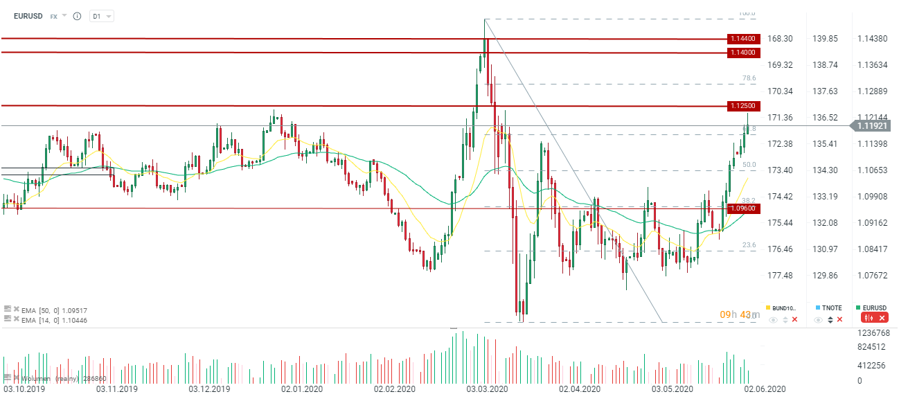 W przypadku tego raportu oczekiwano kolejnego mocnego spadku zatrudnienia. Okazuje się jednak, że zatrudnienie za maj spada o niecałe 3 mln, co jest całkiem dobrym wynikiem patrząc na oczekiwania rynkowe. Niemniej dane te nie wpływają znacząco na rynek. EURUSD lekko odaje wcześniejsze wzrosty, natomiast S&P 500 zbliża się do poziomu 3100 punktów.
