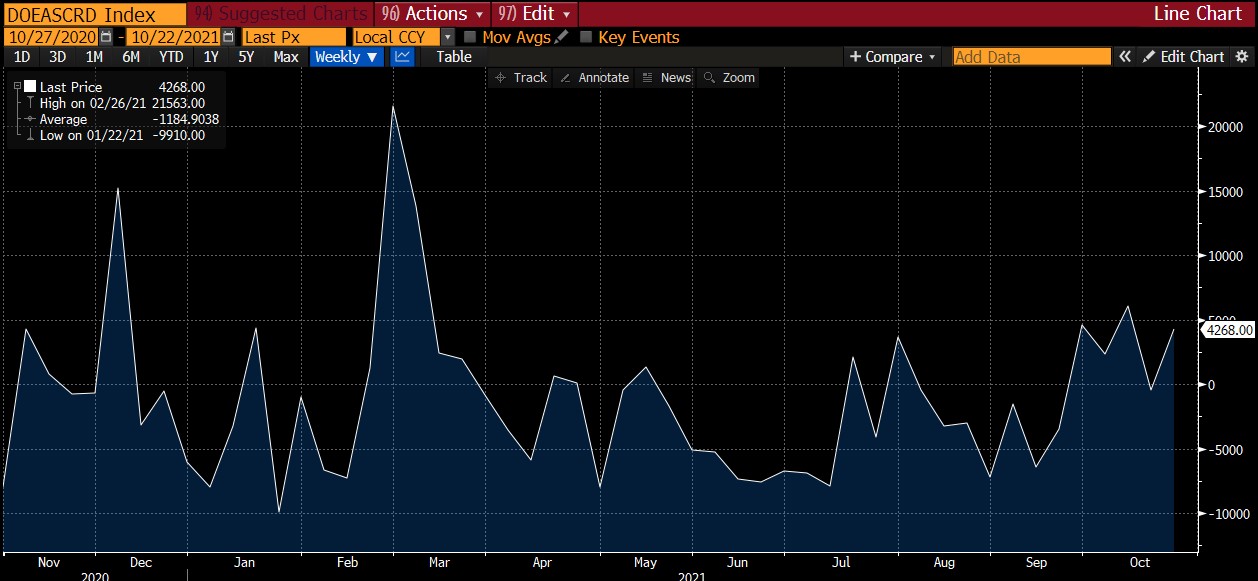 - Zapasy destylatów. Aktualne: -0,43 mb. Oczekiwane: -2,1 mb. Raport API: +0,99 mb