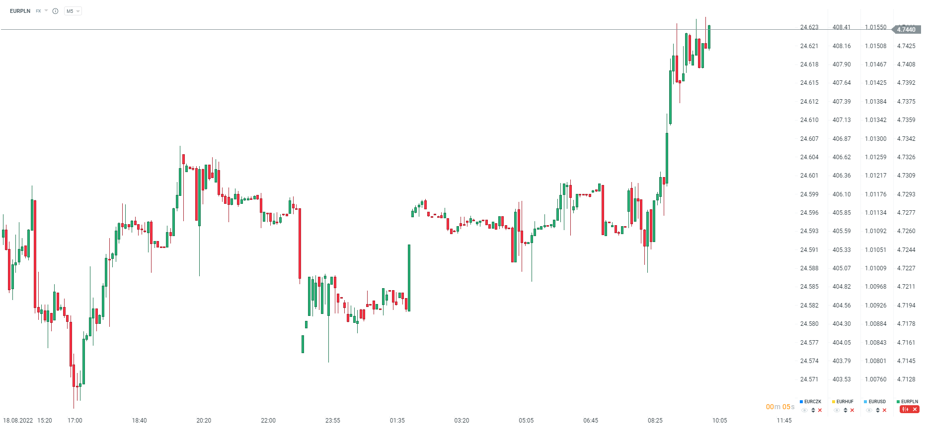 Złoty kontynuuje osłabienie po danych. Źródło: xStation5