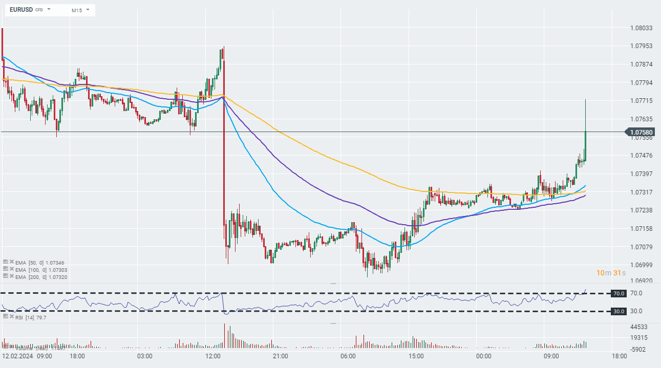 Para EURUSD zyskała na krótko po odczycie dzisiejszych danych makro. W dużej mierze wynika to niższych danych o sprzedaży detalicznej.