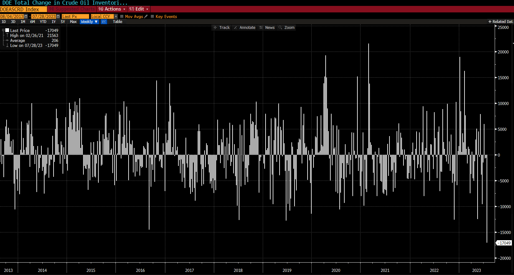 - Zapasy destylatów. Obecnie: -0,79 mb.Oczekiwane: +0,8 mb (API: -0,51 mb)
