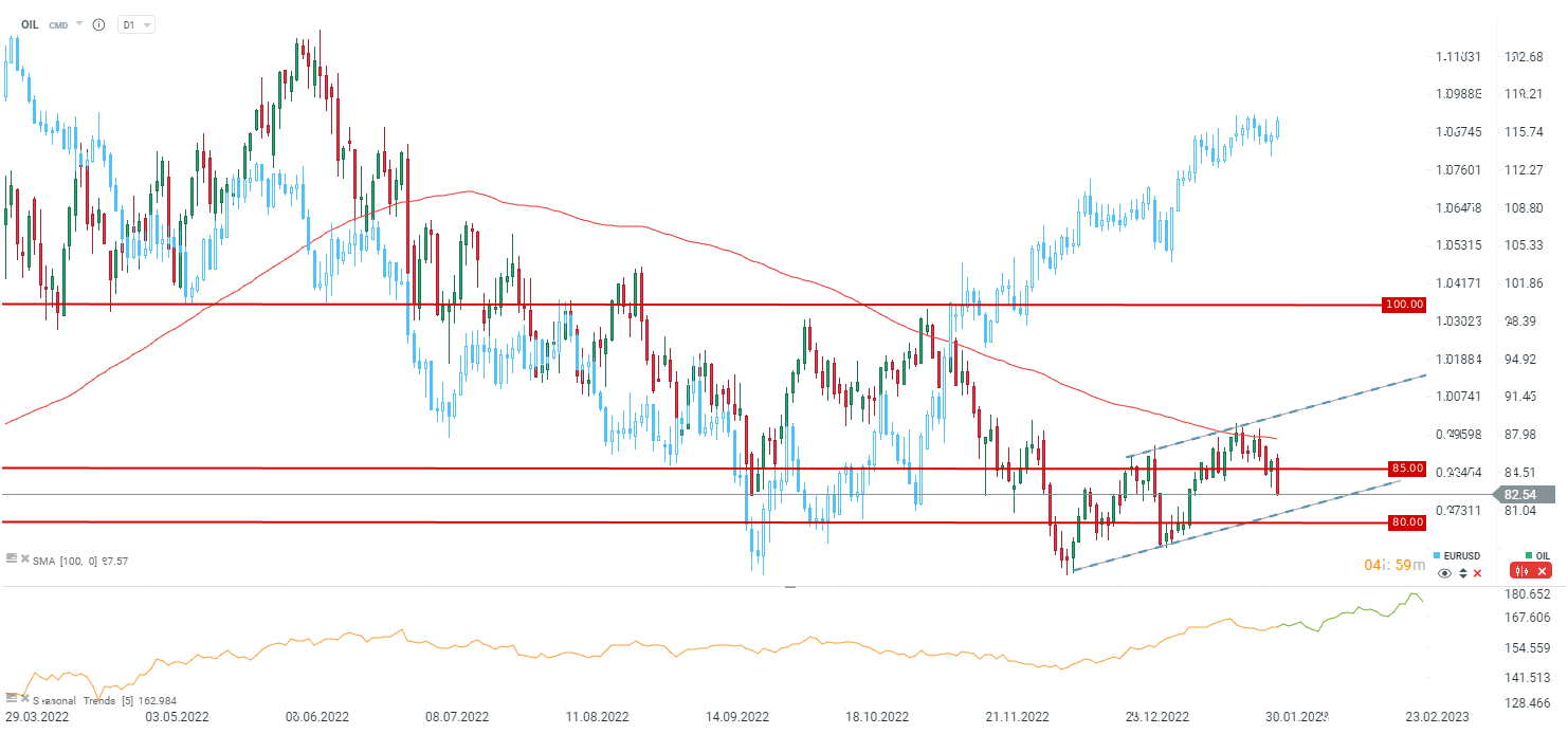 Sporo dzisiaj dzieje się na rynku surowców energetycznych. Gaz testuje obecnie 2,5 USD/MMBTU, natomiast ropa Brent znajduje się w okolicach 82,5 USD za baryłkę. Dzisiaj OPEC+ podjął decyzję o utrzymaniu produkcji bez zmian, choć wydaje się, że rynek czekał na jakieś komentarze dotyczące możliwości dostosowania produkcji w przypadku dalszego spowolnienia gospodarczego.