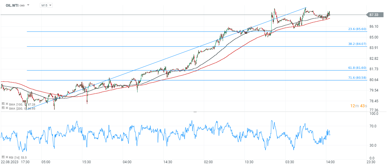 O godzinie 17:00 polskiego czasu opublikowany został raport EIA dot. zapasów ropy i destylatów w Stanach Zjednoczonych. Odczyt wskazał na niższe od prognoz poziomy zapasów.