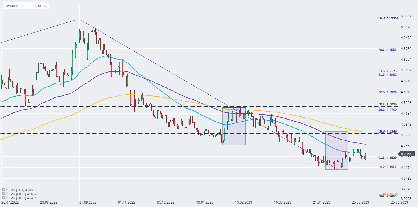 Para USDPLN odnotowuje dzisiaj wzrosty i wraca powyżej barierę 4,20. Sama decyzja RPP nie wywołała jednak podwyższonej zmienności na parze. Źródło: xStation 5
