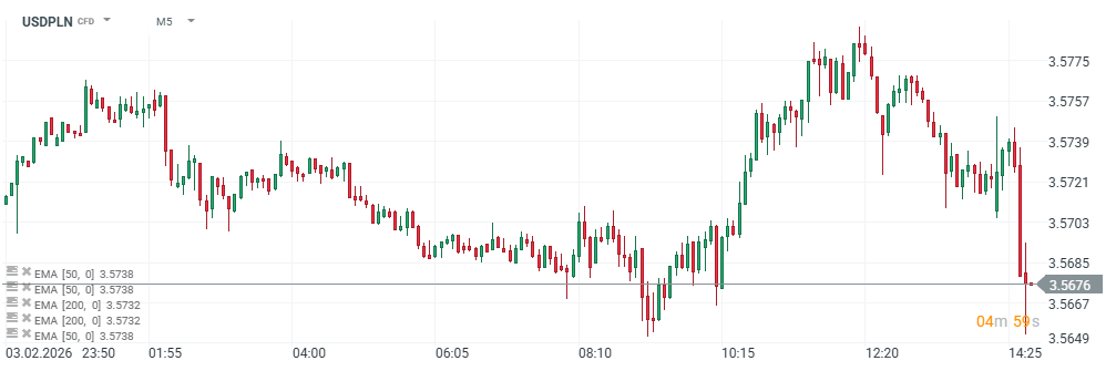 RPP utrzymuje stopy procentowe bez zmian w Polsce w styczniu, na poziomie 4%, czyli zgodnie z oczekiwaniami rynków - mimo spekualcji o możliwej obniżce. Wzrost gospodarki Polski przyspiesza i hamuje 'gołębie' nastroje w NBP. W pierwszej reakcji na decyzję Polski Złoty umocnił się, spychając w dół parę USDPLN; kurs na parze spada do ok. 3,56 wobec 3,58 w południe.