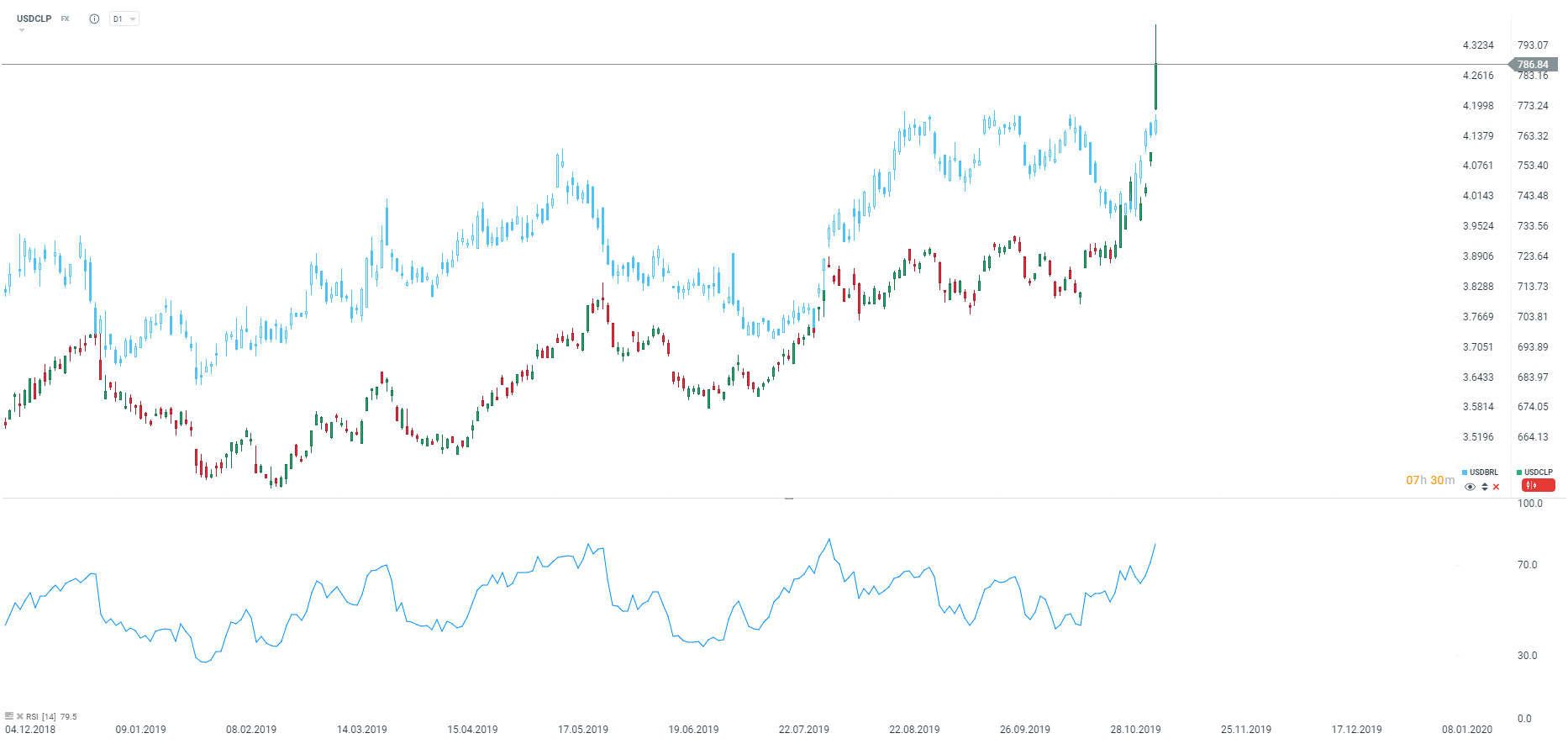 Peso mocno traci ze względu na nasilenie się protestów antyrządowych w Chile. Źródło: xStation5