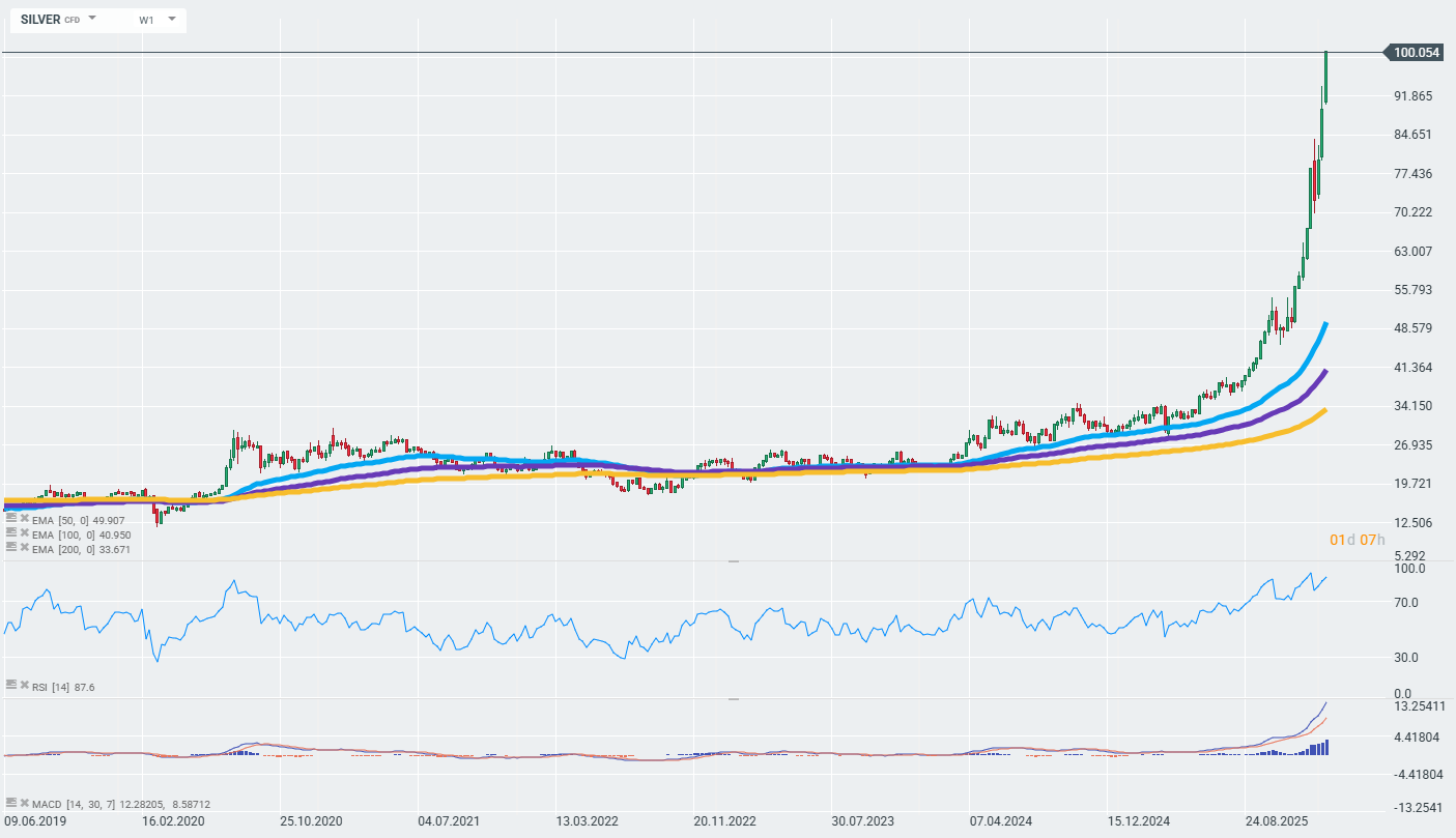 Historyczny moment na rynku SILVER. Instrument po raz pierwszy w historii przebija strefę 100 dolarów za uncję ❗Źródło: xStation