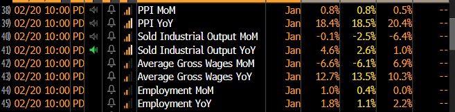 Rozczarowanie danymi za styczeń. Widać spowolnienie i nieco większą presję inflacyjną ze strony producentów. Dodatkowo płace powyżej oczekiwań, zatrudnienie poniżej. Nie jest to dobry raport z perspektywy złotego, choć ten umacnia się minimalnie po danych.